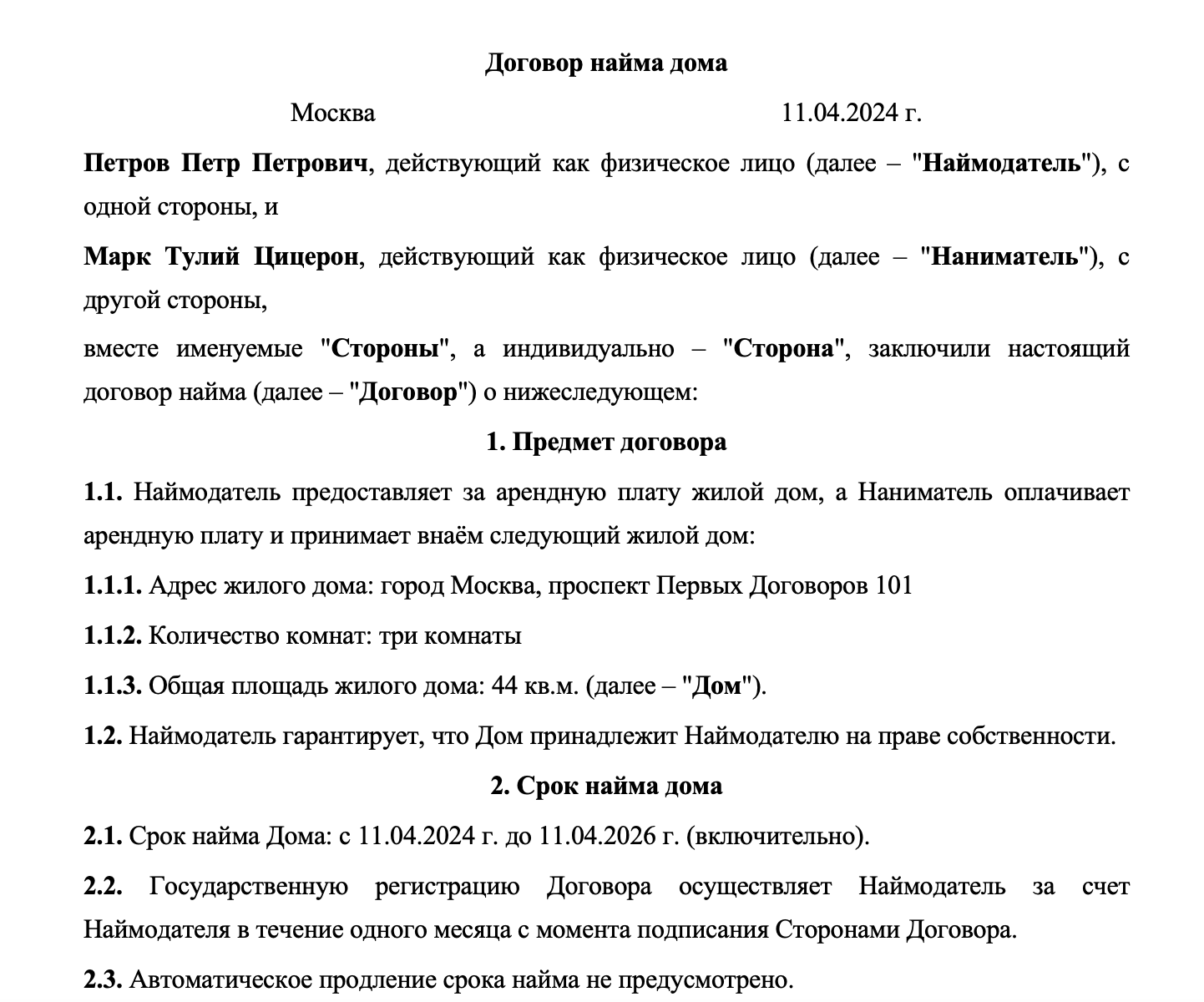 1.2. Наймодатель гарантирует, что Дом принадлежит Наймодателю на праве собственности.