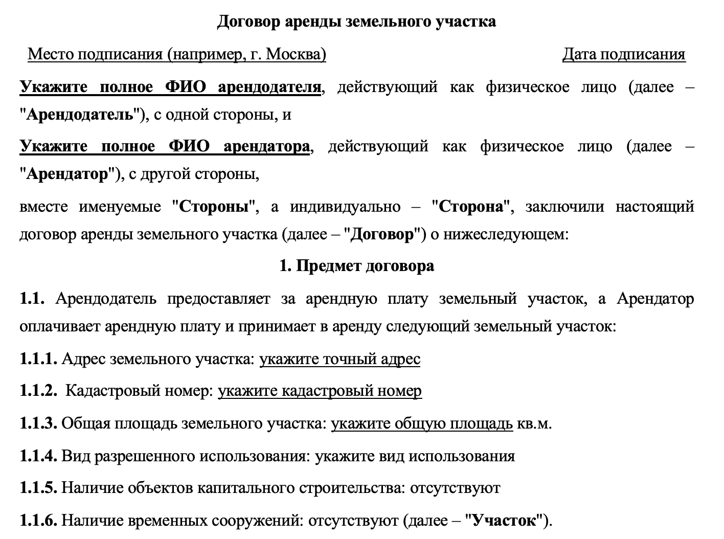 Договор аренды земельного участка