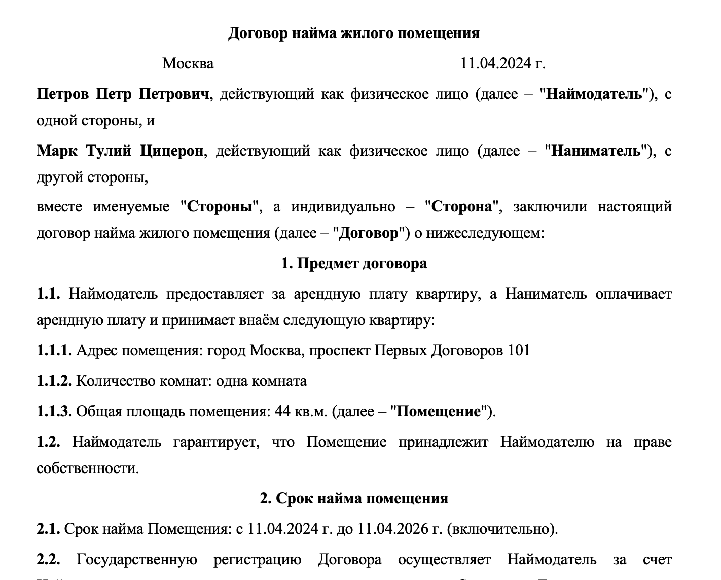 Самое важное: точный адрес жилого помещения, срок найма, размер арендной платы и достоверные данные о сторонах.